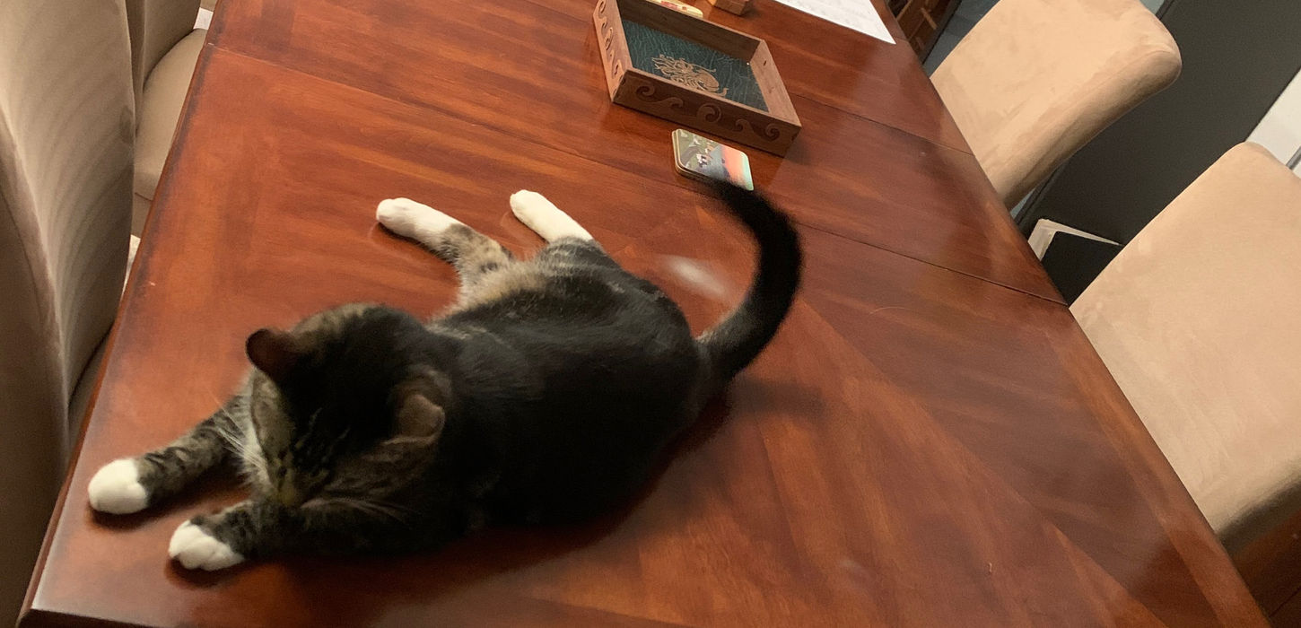 Our Wednesday night RPG group has been meeting consistently for 6 years, and we buy a glorious dining room table with plush chair set so our friends can adventure with us in comfort and majesty. In other news, Larrea hikes the Grand Canyon with her father to celebrate his 80th birthday, then drives to San Diego and is promptly murdered by hotel room-service french-fries.